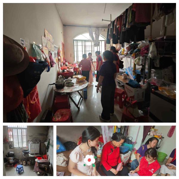 燕玲租住的地方在一条拥挤的小巷子里,不方便停小车,所以我们只能骑小电驴过去。到地方之后,远远看到燕玲提着吊瓶走过来迎接我们,原来是感冒了还在打点滴。走到楼下便看到了燕玲奶奶,奶奶笑眯眯的,非常亲切。燕玲和奶奶把我们带上了楼,她们住在一间很拥挤的出租屋里,可能就三四十平米。原来燕玲不是田阳人,只是来田阳读高中,老家在隔壁田东县的一个村子里,奶奶为了照顾她,只能在这里租房住。屋里面摆着两张床,其中一张是双层的,上层用来放东西,墙上贴满了燕玲的奖状,看得出燕玲成绩很好,是一个非常优秀的姑娘。厨房和厕所是在楼梯间,有些简陋。