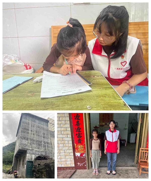 今天家访的芳婧小朋友是来自一个重组家庭,她的亲生父亲去世之后,母亲带着她和姐姐改嫁到金谷乡隆明村,新的家庭又给芳婧增添了两位同母异父的妹妹弟弟,姐姐已经出嫁,现在这个重组家庭实际上有六口人共同生活。