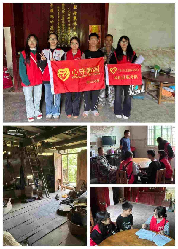 2025年11月1日,我们驱车前往凤山县砦牙乡板叶村,在村干的带领下来到了邦乾的家里。邦乾家的房子是一栋两层的农村自建房,和大多数广西人的房子一样,外面贴上了瓷砖,但有些褪色划痕的红棕色大门还是向我们透露了这座房子居住使用的时间并不短。刚到门口,邦乾和爸爸就热情地出来迎接我们让我们入座。屋内陈设简单,拥有简单的家具和冰箱热水器洗衣机等家电,每个房间都打扫得干干净净,整洁有序。邦乾的妈妈外出务农未归,我们和邦乾还有邦乾爸爸开始了今天的家访。