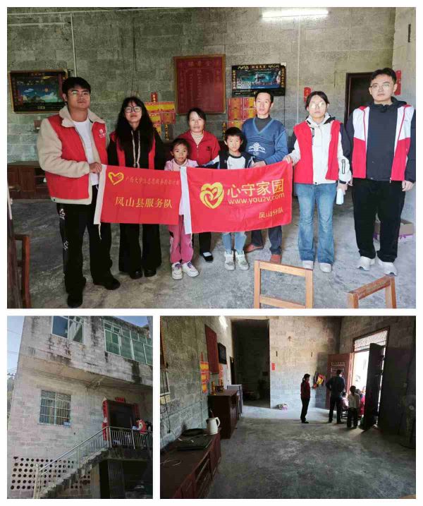 2025年11月15日,我们志愿者四人跟着村干里妇联主席到佳瑶家里进行家访交谈,她家在凤山县长洲镇**村**屯,佳瑶父亲不在家,佳瑶的伯伯带着佳瑶回来,等待着我们家访,平时佳瑶住在外婆家里,伯伯说佳瑶父亲一年都在广东务工,只有开学和过年会回家。每周都会和佳瑶视频通话了解佳瑶的生活情况和学习状况。伯伯说到父亲时,佳瑶说很想爸爸在身边。