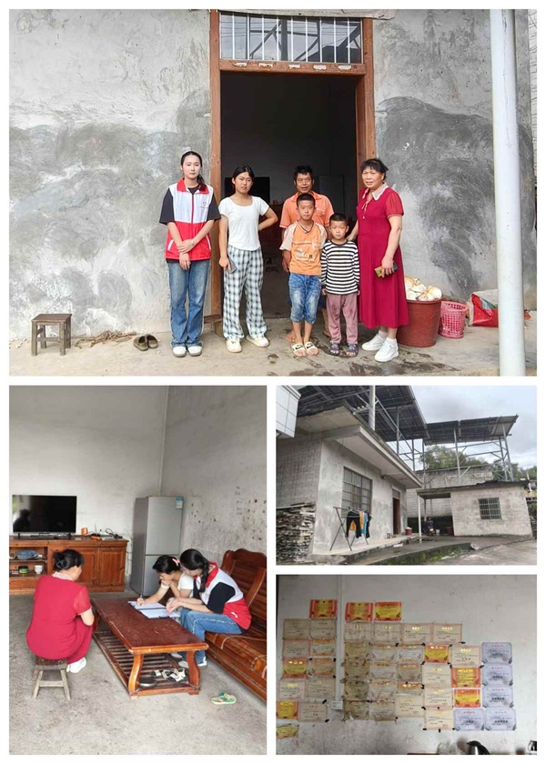 2025年7月23日上午11:00,天气阴。心守家园蒙山分队西部计划志愿者韦嘉怡跟随蒙山县西河镇**村包村工作组组长黄绍强及村委成员刘天龙、梁梅从村民委员会乘车来到小金家进行家访。从西河镇人民政府出发,40分钟左右的车程,我们到达了小金的住处。
