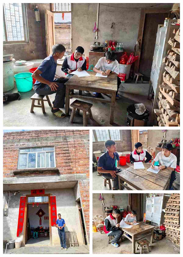 在家访交流中得知,达津的母亲多年前因家庭变故离开,平常家里就只有他和父亲在家。哥哥刚出去找工作,姐姐高考失利去读大专了。他父亲今年54岁,前两年在工地打零工时摔伤过腰,现在干重活就会隐隐作痛,只能靠养蚕和偶尔帮村里人种甘蔗、收稻谷打零工挣钱,每月收入不稳定,要是赶上蚕茧行情差,全家开支就只能紧巴巴凑活。“三个娃要吃饭、要交学费,我这身体又不争气,幸好达津懂事,从不跟我要东西。”父亲说这话时,达津正默默给我们倒热水,听到父亲的话,悄悄低下了头。“每周放学回家,他先把作业写完,就来帮我喂蚕、扫院子,周末还会去山上采桑叶。”父亲说起达津,眼里满是欣慰。