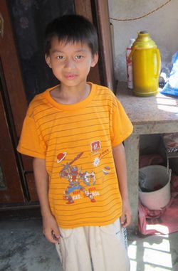 刘瑞家住在井头镇偏远的总管村老女组,离小镇有12公里,要翻二座大山,公路是村里人花五年时间才修通的,还是不通汽车,现在想起坐摩托去都还心有余悸。这个村子至今还是土斗的房子多,普遍较穷。刘瑞只有一岁时,母亲就因病去世,是奶奶一手带大的,他的父亲一直在外,与家里没有联系,是个不负责任的人。家里一贫如洗,但奶奶对孙子很关爱,可年纪大了,有73岁了,好在这里的山水很好,奶奶看起来只有60来岁。奶奶讲,孩子很听话,只是生在这个家太委屈了。 |