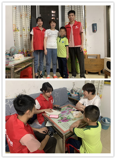 小烊家租住的出租房就在龙胜镇第二小学的坡下,家访这天晚上,我们志愿者一行人提前和孩子的妈妈联系,来到出租屋家访。昏暗的灯光,狭小的房间,却也掩盖不了它的干净整洁。一进家门,小烊便和我们一一打招呼,标准的少先队礼让我们仿佛身处校园。我们围桌而坐,孩子一直保持着端正的坐姿,让我不禁赞叹,这是多么懂事、自律的一个孩子啊!