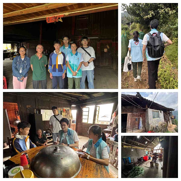 2025年10月18日星期六,我们在龙胜镇团委书记和山东村支书的带领下,到达小萍同学的家。从外观看是一栋一层的木质结构楼房,房前左侧开垦了土地种了蔬菜。我们刚抵达家门口,小萍的外公就早已在门口等候迎接。进门后,一楼十分空旷,大部分地方用于堆放杂物,家具、鞋子等物品零散地放在墙边。在圆桌坐下后环顾了四周,小萍正在采光好的靠窗旁边的小桌子上写作业,旁边则是一台比较旧的挂式电视正在放抗战片,最为醒目的是一整面墙贴满了小萍和弟弟的奖状。这一层共有两个卧室、一个客厅、一个厨房和一个卫生间,家具电器都比较老旧,根据外公描述,冰箱和电视是2017年左右买的。