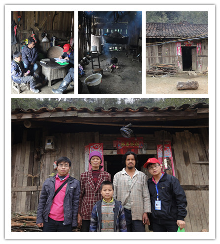 由于这次走访的预定对象都是初中生,没有了解到这家的情况,锦锋家在金凤家隔壁,我们到了金凤家后,那隔壁很破旧的木板房引起了我们的注意,与带路人的聊天中,得知,这家有两个孩子读小学,父母文盲,不会普通话,难以外出赚钱,留在家打打散工,几乎没有收入,还有一位老人有心脏病,于是我们马上决定对他家进行更深入的了解,收集两位小学生的资料。