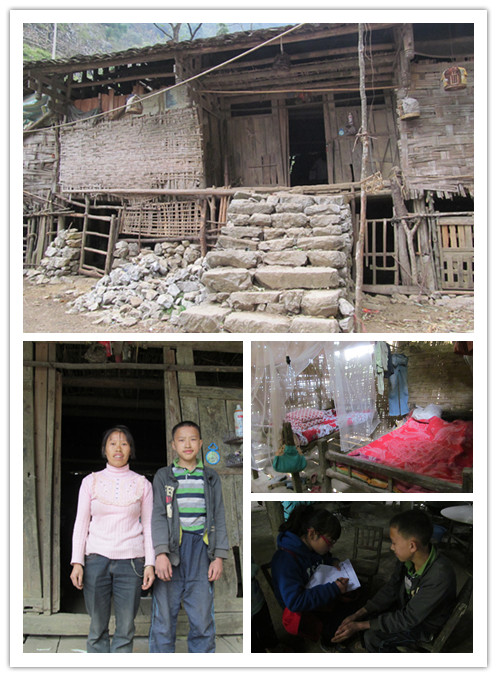 富贵的父亲有比较严重的胃病,去医院检查得知富贵父亲的整个胃因没有及时治疗已经开始糜烂了!富贵的母亲告诉我们,因为富贵父亲的病,家里已经向亲戚借了5000多元的外债。我们还从校长那得知富贵上学期还因父亲的病没有足够的钱而辍学,在家帮妈妈干活,由此可见,富贵是个懂事的孩子。而这学期家庭条件稍微有点起色后,经老师们的劝说,富贵又重返校园。富贵的家里还有2个年幼的妹妹也在读书,因父亲患病不能出去做太沉重的活,家里就依靠母亲一个人在田间辛劳耕作维持家用。家里连像电饭煲这样的像样家电都没有。