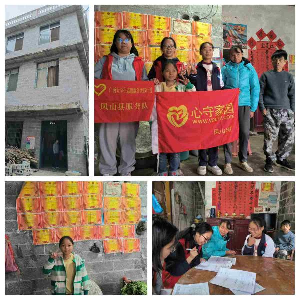 联系方式只留有爸爸的,但爸爸在山上摘油茶,没有信号无法接通电话,我们是靠党支书进行联系的,我们到达村部的时候,党支书以及驻村工作队队员非常的热情,党支书一路上都在跟我们说这个家庭的条件十分艰苦,但好在孩子们都是好孩子,很乖,成绩很好,值得资助;驻村工作队员是外地来驻村,他第一次听说心守家园,感到十分好奇,一路上问了我们许多相关问题。