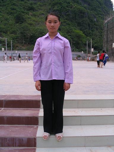 4月5日,我本想去家访一个叫杨秋菊的女孩,由于从县城到女孩的家凌云县加尤镇上岩村老屋基屯的路坏了,汽车上不去,到半路拦截了一车摩托车,终于到了那里。杨家附近有一个小屯叫大坪屯,在那里,我见到了郁正福——一个12岁的男孩子,他很成熟懂事,父亲今年才48岁,但因为风湿关节炎无法医治已全部丧失劳动能力,只有靠拐杖才能勉强站起来。